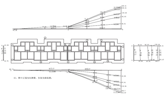 該房為中間設(shè)有10CM沉降縫的4單元6層筏板基礎(chǔ)、磚混結(jié)構(gòu)房。因沉降縫處有暗浜而發(fā)生不均勻沉降,結(jié)果屋頂沉降縫處相碰觸,4、5、6樓均出現(xiàn)裂縫。經(jīng)糾偏后房屋回傾脫開,恢復(fù)正常。