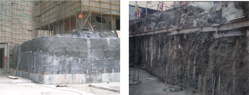 土釘墻就是在基坑開挖時(shí)向側(cè)壁土體內(nèi)打入一定長(zhǎng)度的土釘,再將各層土釘端部用鋼筋網(wǎng)片拉結(jié)起來,最后于側(cè)壁上噴射速凝細(xì)石混凝土墻面的基坑護(hù)坡方法 (它利用土釘與土體之間提供的摩擦阻力,抵擋基坑側(cè)壁外部土體的推力,防止基坑土體側(cè)向位移,從而使基坑穩(wěn)定) 。